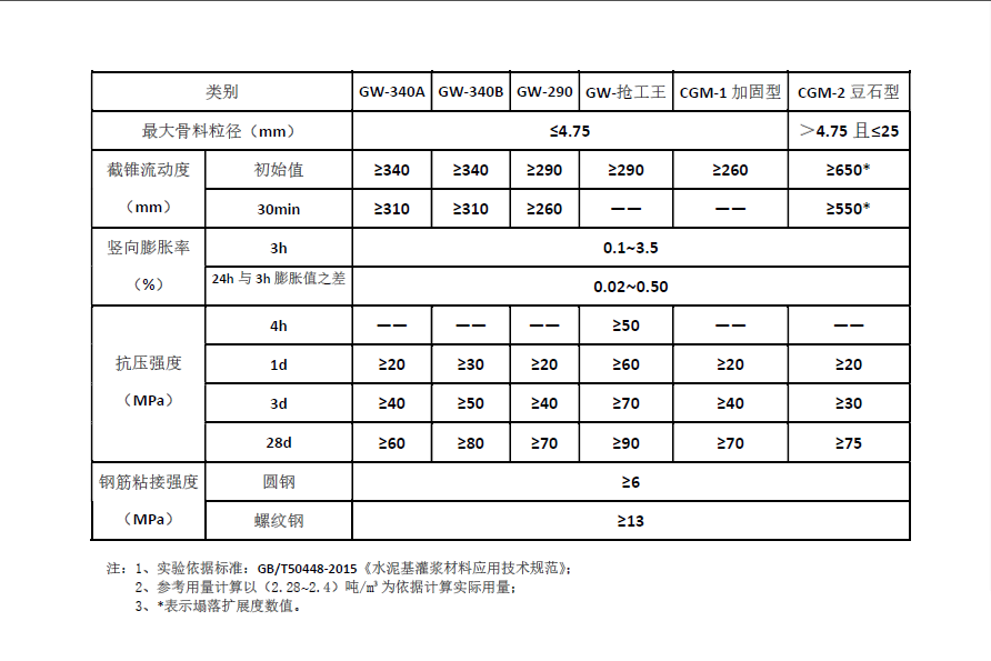 2、大流动度、不泌水、不离析,保证施工更加简便快捷,确保施工质量。